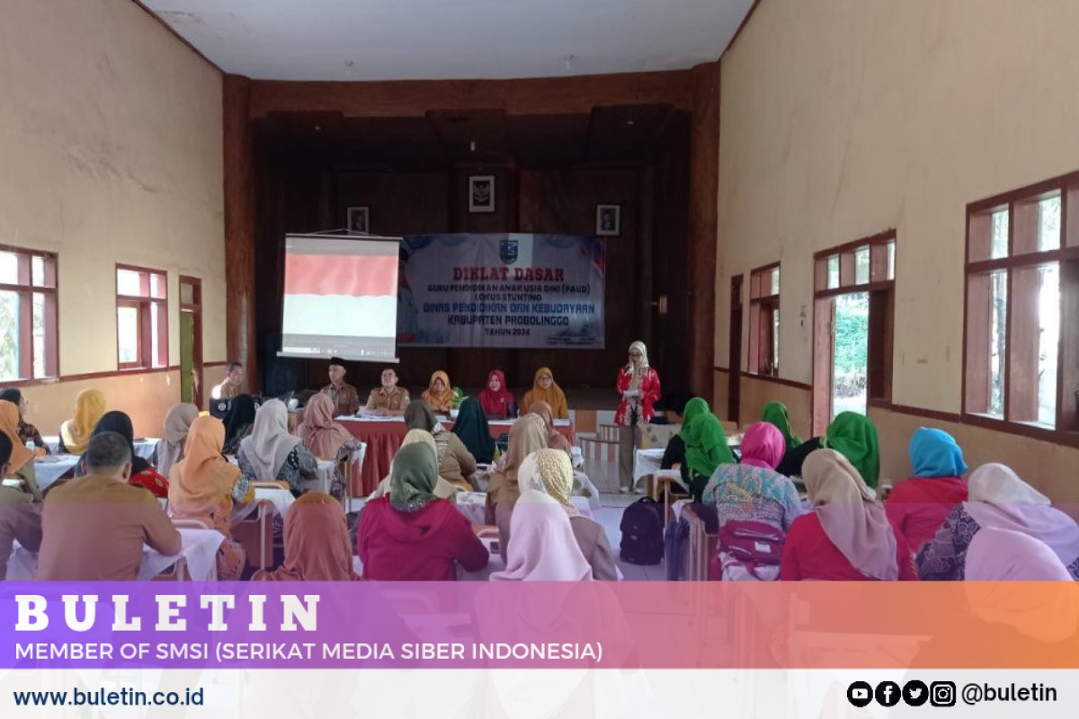 Probolinggo, BULETIN.CO.ID – Dinas Pendidikan dan Kebudayaan (Disdikdaya) Kabupaten Probolinggo menggelar pendidikan dan pelatihan dasar (diklatsar) guru Pendidikan Anak Usia Dini (PAUD) lokus stunting di SMP Negeri 1 Sukapura, Senin hingga Jum’at (22-26/7). /2024).