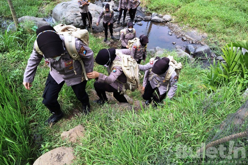 Jelang Hari Jadi Polwan Ke-74, Polwan Polres Situbondo Trabas Sungai dan Persawahan Bagikan Bantuan Sembako ke Desa Terpencil