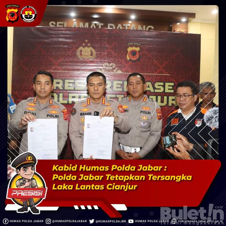 Cianjur, BULETIN.CO.ID – Polda Jabar akhirnya menetapkan Sugeng Guruh Gautama Legiman sebagai tersangka kecelakaan lalu lintas yang menewaskan seorang mahasiswi di Kabupaten Cianjur. Minggu ( 29/01/2023).