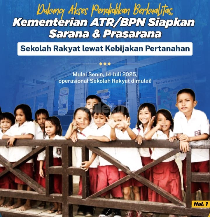 Kementerian Agraria dan Tata Ruang/Badan Pertanahan Nasional (ATR/BPN) menyatakan dukungan penuh terhadap program Sekolah Rakyat yang menjadi salah satu instrumen strategis pemerintah dalam menekan angka putus sekolah.