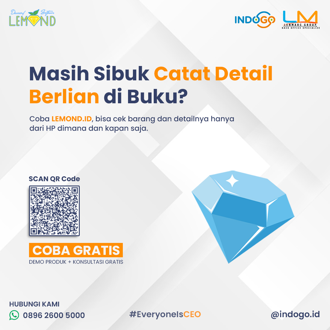 INDOGO.ID saat ini memiliki suatu produk yang bernama LEMOND.ID. Dimana produk ini dapat membantu banyak pemilik Toko Berlian, khususnya di Indonesia, untuk bisa berkembang dan bertumbuh dengan lebih baik. Dengan pengalaman belasan tahun yang dimiliki oleh INDOGO.ID, mereka yakin dan ingin membantu lebih banyak Toko Berlian untuk bisa bertumbuh bersama INDOGO.ID.