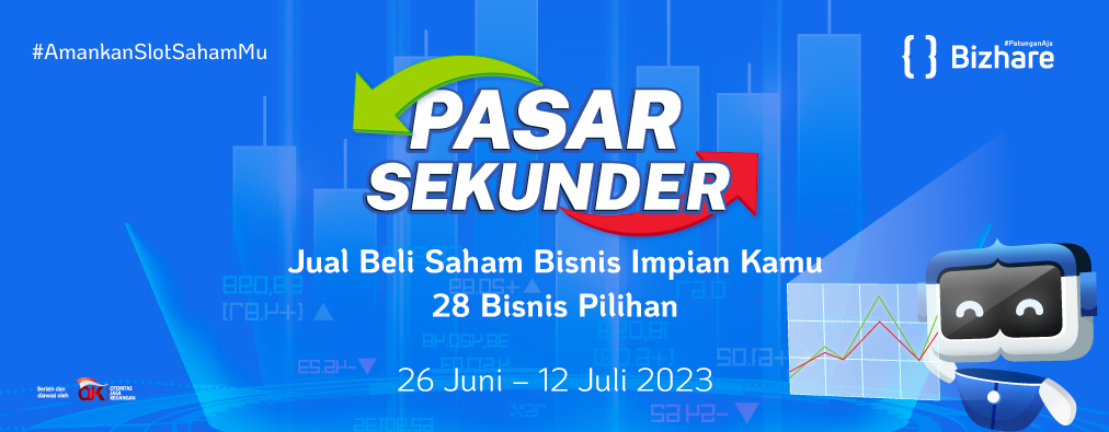 Pasar Sekunder Bizhare ini merupakan sebuah ajang rutin 6 bulanan yang memungkinkan para investor untuk melakukan transaksi permintaan (bid) dan penawaran (offer) saham secara Transparan dan Aman di platform Bizhare, baik melalui website www.bizhare.id dan aplikasi Bizhare. enyadari betapa pentingnya keamanan dan kenyamanan dalam melakukan transaksi investasi, oleh karena itu Bizhare memastikan bahwa semua bisnis yang terdaftar di Pasar Sekunder Bizhare telah berjalan selama minimal 1 tahun danjuga telah terdaftar di Kustodian Sentral Efek Indonesia (KSEI), sehingga kepemilikan efek milik investor tercatat dengan baik secara legal..Sejak bulan April 2020, Bizhare telah bekerjasama dengan KSEI sebagai lembaga penyimpanan saham kolektif investor secara scripless. Hal ini menjamin keabsahan dan keamanan dalam kepemilikan saham bagi investor yang berpartisipasi dalam perdagangan pasar sekunder ini. Dengan dibukanya Pasar Sekunder Bizhare, menjadi kesempatan bagi para investor untuk melakukan jual beli saham di platform Bizhare secara likuid. Pasar Sekunder Bizhare akan berlangsung pada 26 Juni – 12 Juli 2023, Senin – Jumat mulai pukul 09:00 – 16:00 WIB, dan  hari Rabu hingga Jumat tanggal 28-30 Juni, pasar sekunder tidak beroperasional (tutup) sementara karena mengikuti ketentuan cuti bersama dan libur hari raya Idul Adha dari Pemerintah. Dalam perhelatan ini, investor dapat dengan mudah melakukan transaksi jual beli saham dengan investor lainnya, menemukan peluang investasi yang menarik yang sudah beroperasional minimal satu tahun, dan mengembangkan portofolio investasi mereka untuk bersama-sama menciptakan  masa depan keuangan yang lebih baik, agar bebas secara finansial.