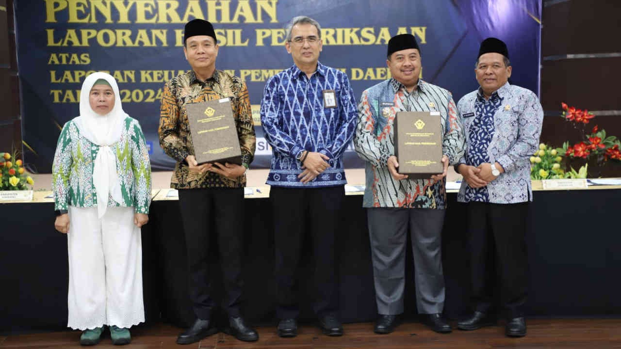 Penyerahan Laporan Hasil Pemeriksaan (LHP) atas Laporan Keuangan Pemerintah Daerah (LKPD) Tahun 2024 Kabupaten Jombang ini dari Kepala Perwakilan BPK RI Jatim Yuan Candra Djaisin kepada Bupati Jombang Abah Warsubi dan Ketua DPRD Kabupaten Jombang yang dilaksanakan di Kantor BPK RI, Perwakilan Jawa Timur. Kamis (17/5/2025) sore.