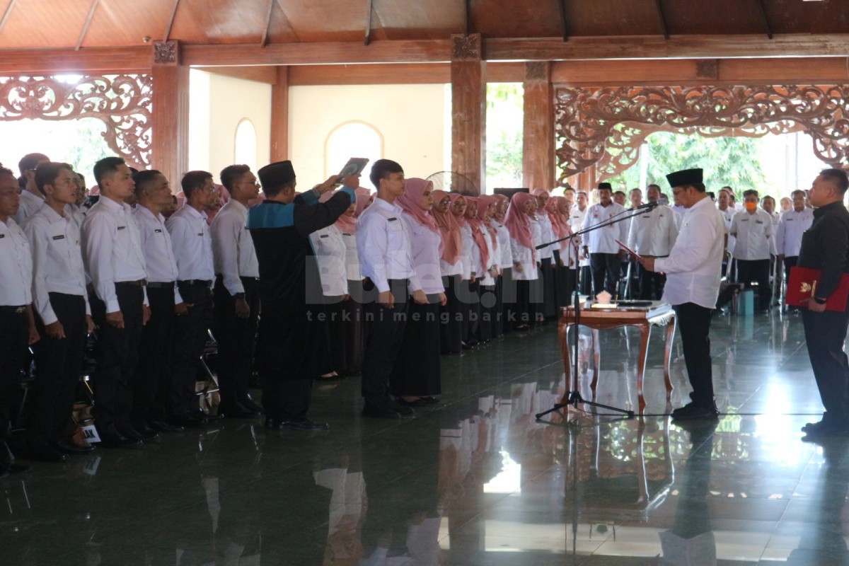 Pamekasan, BULETIN.CO.ID – Sebanyak 445 Pegawai Pemerintah dengan Perjanjian Kerja (PPPK) formasi Tahun 2023 resmi dikukuhkan oleh Pj Bupati Pamekasan melalui pelantikan dan sumpah jabatan di Pendopo Mandhapa Agung Ronggosukowati, Rabu (27/3/2024) sore.