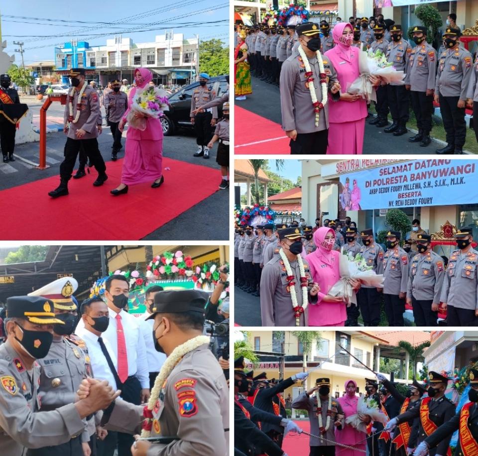 Pergantian Kapolresta Banyuwangi itu, disambut langsung seluruh perwira Polresta Banyuwangi dengan tradisi pedang pora di halaman Polresta Banyuwangi, Selasa (17/5).
