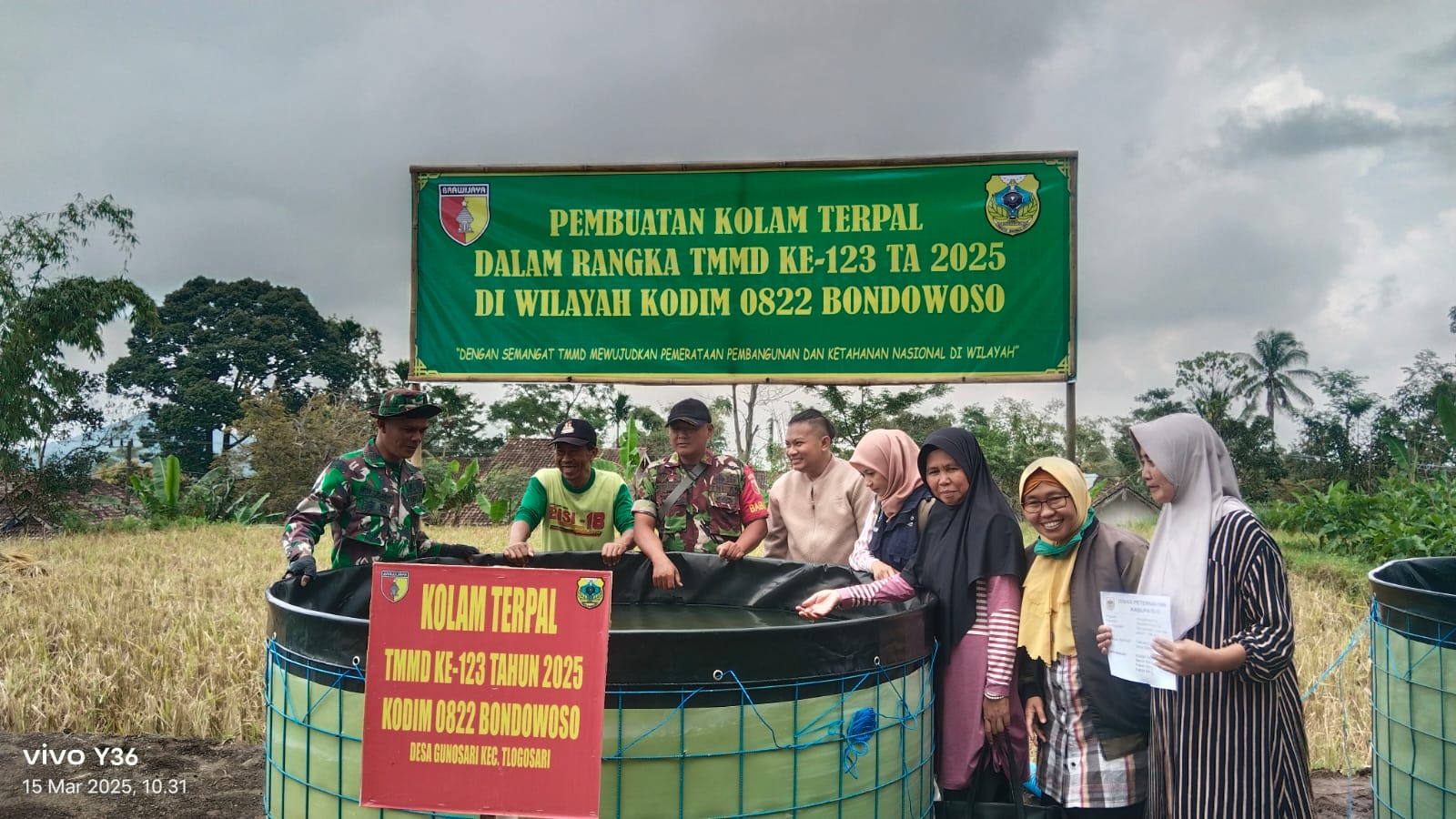 ” Adanya kolam terpal dan bibit lele ini kelak mampu meningkatkan perekonomian dan membantu gizi penderita stunting disekitarnya” pungkas Dandim 0822. (Pendim0822).