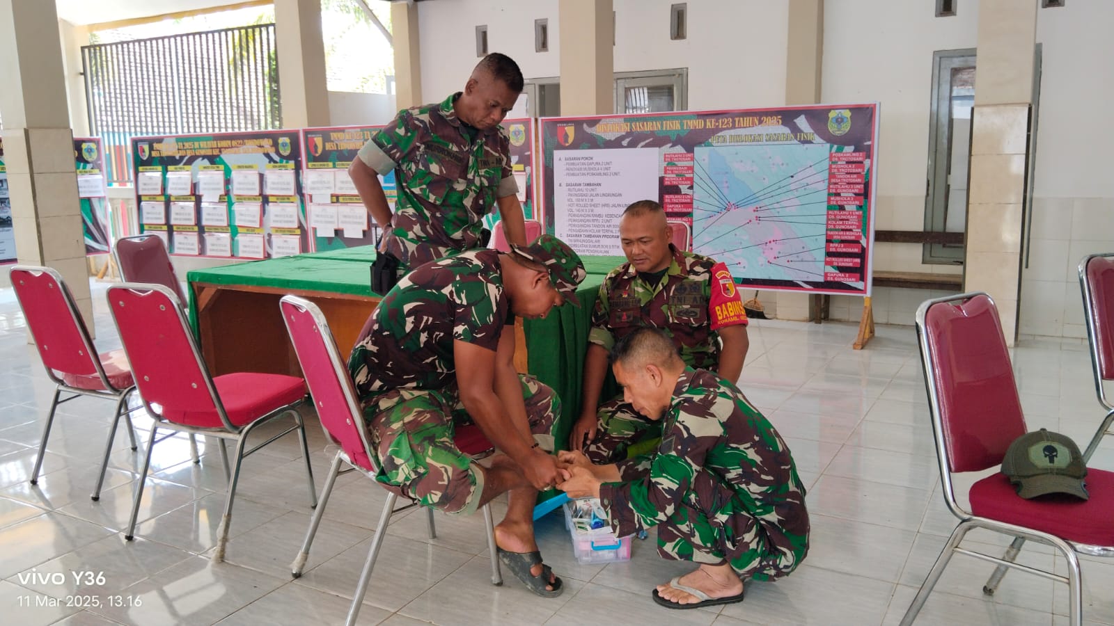 Praka Mar Faturahman segera mendapatkan perawatan pertama dari Serka Munir, yang memiliki keahlian di bidang medis. Luka akibat paku tersebut langsung dibersihkan dan diobati agar tidak menimbulkan komplikasi lebih lanjut. Kecekatan tim medis dalam menangani insiden ini menunjukkan kesiapan Satgas TMMD dalam menghadapi berbagai situasi darurat di lapangan.