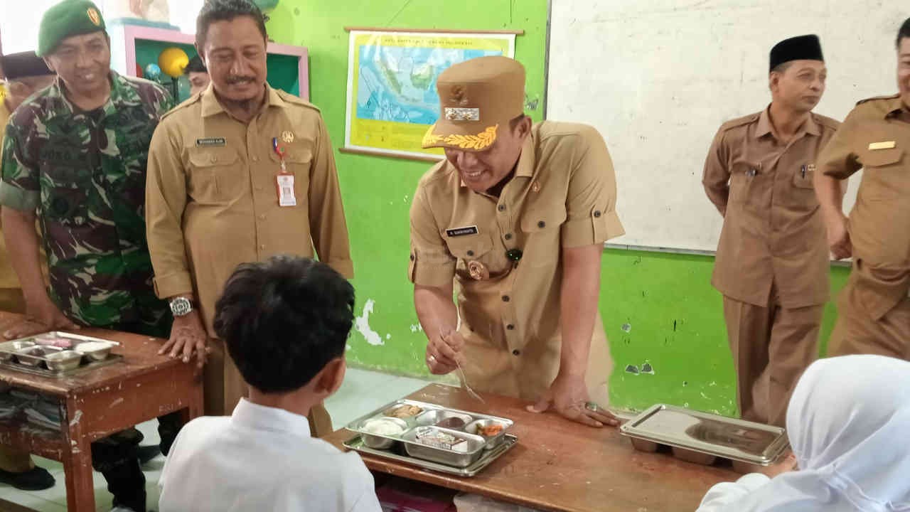 Usai meninjau kesiapan dapur MBG di Kelurahan Jungcangcang, Wakil Bupati Pamekasan langsung bertolak ke Sekolah Dasar Negeri (SDN) Laden 1 untuk meninjau langsung proses pendistribusian MBG ke siswa SD.