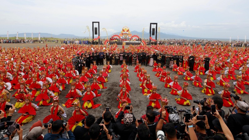 Kabupaten Probolinggo, BULETIN.CO.ID – Masyarakat Suku Tengger di kawasan Gunung Bromo melakukan resepsi Hari Raya Yadnya Kasada 1945 Saka sebelum ritual larung sesaji, Minggu (4/6/2023) malam di Pendopo Agung Desa Ngadisari Kecamatan Sukapura.