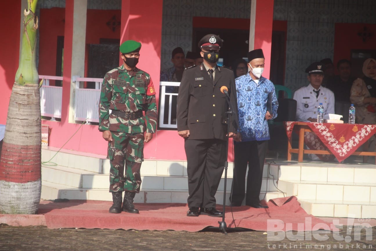 Bertugas selaku Inspektur Upacara Babinkamtibmas dan Babinsa Desa Kanoman mewakili Kepala Desa Kanoman di karenakan sedang sakit.