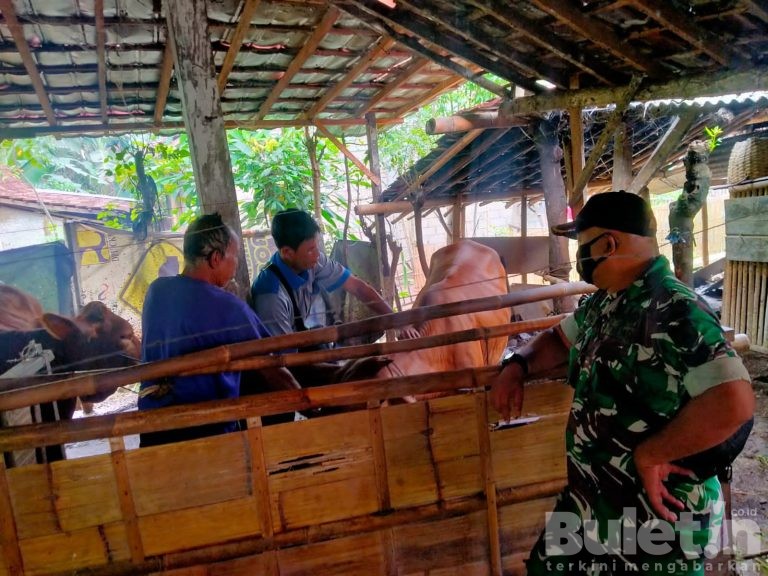 Sertu Moh Rojikin Babinsa Desa Paspan Koramil 0825/03 Glagah Dampingi Pemberian Vaksin PMK